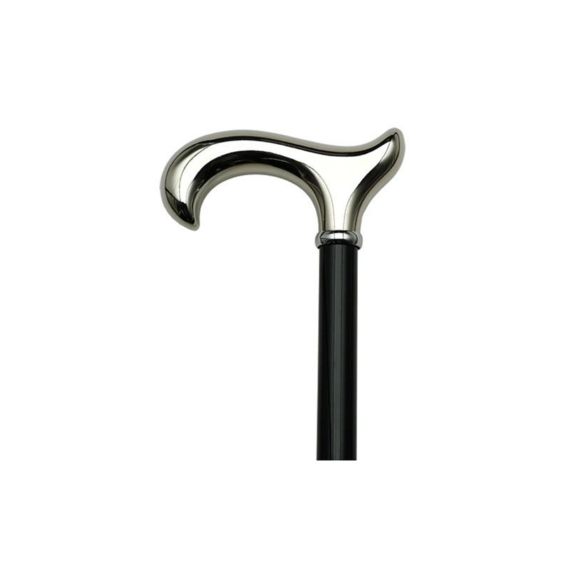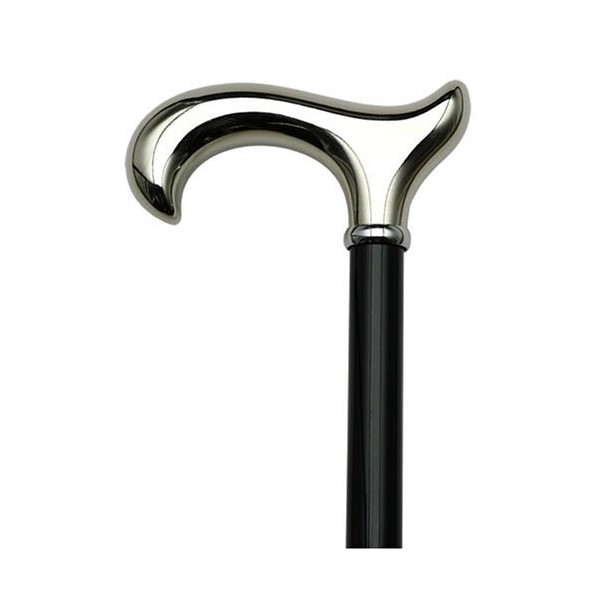 Walking Cane Chrome. This Walking Stick Cane has a Chrome Plated Derby Handle on Shiny Black Hardwood Shaft.