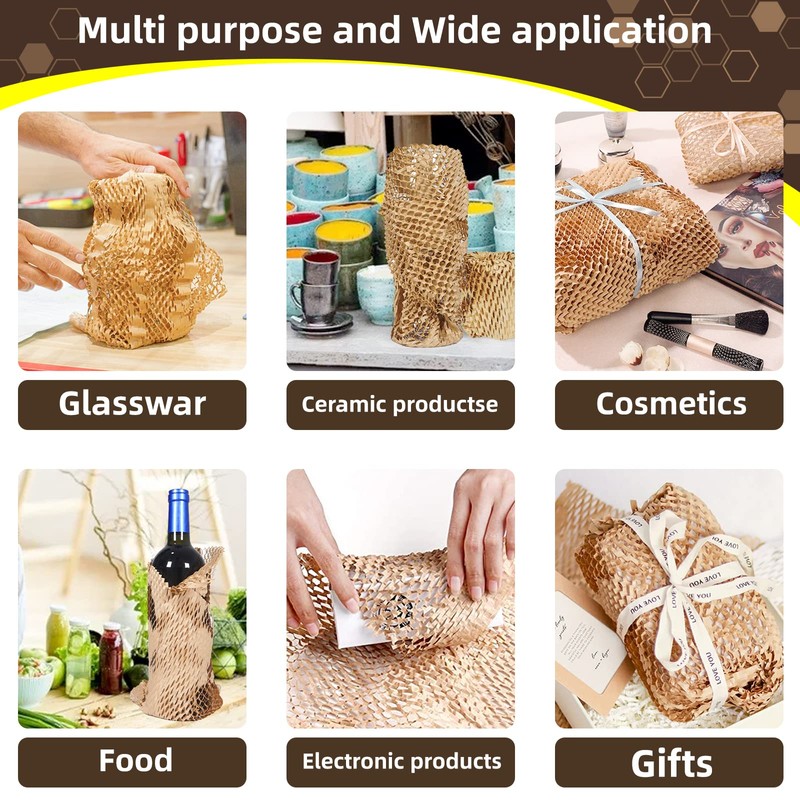 - Environmental friendly packing supplies: Eco friendly 100% biodegradable kraft paper, green alternative to plastic packaging materials. After stretching, the honeycomb structure can increase the cushioning performance and effectively protect the items that need to be wrapped.