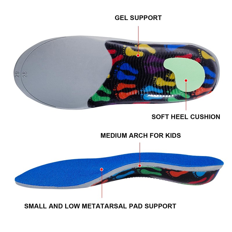 Walkrofeet Kids Medium Arch Orthotics Low and Comfort Metatarsal Pad Inserts Relieve Plantar Fasciitis Foot Pains with Gel Heel Cushion