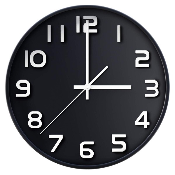 - coslife Wall Clock 3D 12 Inch Non-Ticking Silent Quartz Decorative Clocks Easy to Read Home Kitchen Office School Clock (Black