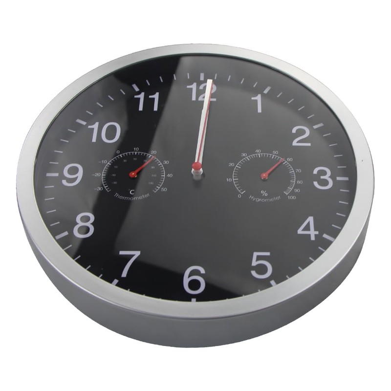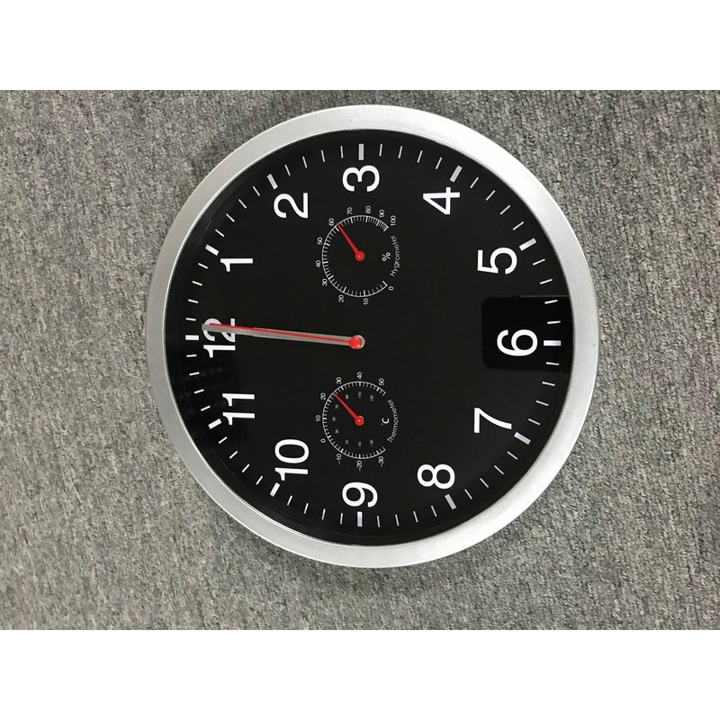 - DESIGN This wall clock with thermo&hygrometer and high-end scanning, silent movement, black dial, red thermometer and hygrometer, let you instantly see the weather of today.