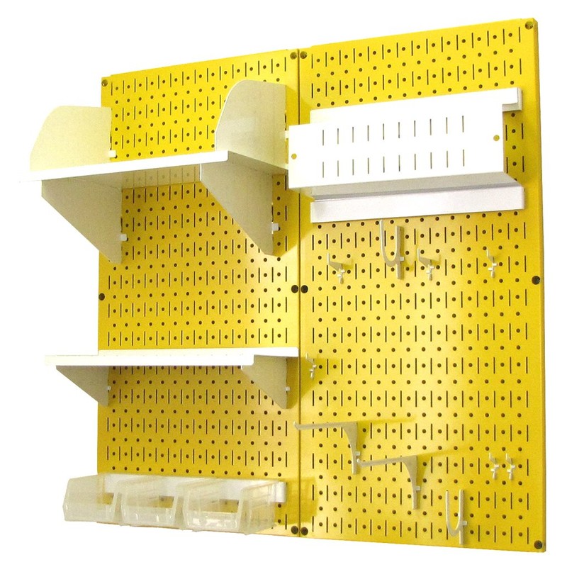 Wall Control Craft & Hobby Pegboard Organizer Storage Kit with Yellow Pegboard and White Accessories
