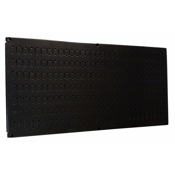 The Wall Control Pegboard 16in Tall x 32in Wide Horizontal Black Metal Pegboard Tool Board Panel is Durable, Versatile, and Attractive. This Wall Control Pegboard Panel is constructed from 20 Gauge Steel and is over 10 times stronger than conventional pegboard. The horizontal pegboard construction allows for tool storage in confined areas like above workbenches and under cabinets. The Metal Pegboard Tool Board Panel will accept conventional 1/4in standard peg-board hooks as well as Wall Control's patented and secure slotted pegboard hooks and accessories. The Horizontal Black Metal Pegboard Tool Board features a long lasting and attractive baked-on powder-coat finish The Pegboard Panel Includes (1) 16in x 32in Horizontal Black Metal Pegboard Tool Board Panel with Mounting Hardware and Instructions. Made in USA.
