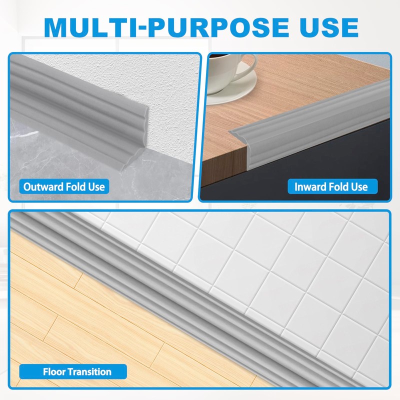 - Flexible Design: The corner molding trim can be adjusted to different angles, allowing for inward or outward flipping of 0-315 degrees as well as flat installation. As a result, it can serve various functional needs such as wall corner protection, sealing strip, floor transition strip, and table corner protection.Good Material: Crafted from premium materials, the peel and stick wall molding trim is made of high-quality material that offers superior softness and resilience compared to traditional alternatives. The corner wall protectors molding trim demonstrates exceptional performance in terms of longevity, waterproofing, stain resistance, corrosion resistance, and anti-aging properties.