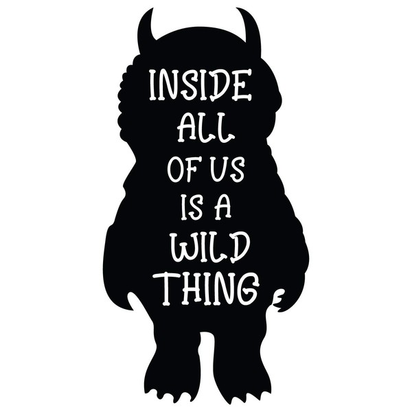 Wall Decal: Inside All of Us is a Wild Thing with a Character Silhouette from the Movie Where The Wild Things Are Black and White Art with Quotation for Living Room Vinyl - Carol Artwork Creative Design for Bedroom Decoration - 20" x 10"
