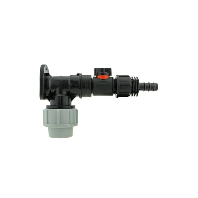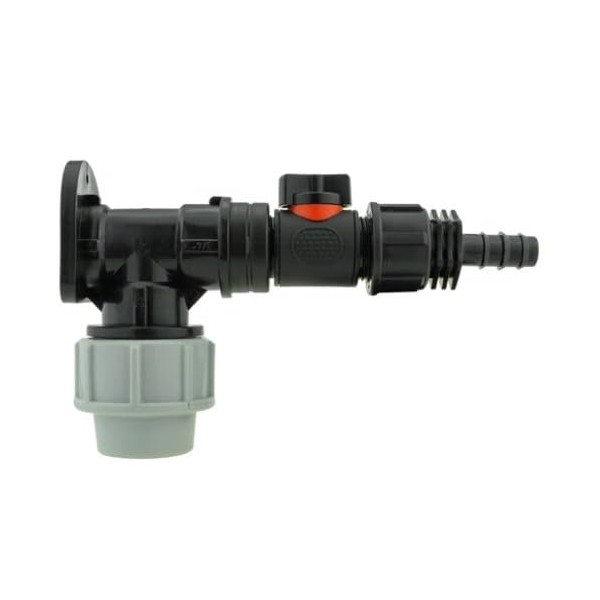 Wall Flange Kit 25mm MDPE Set Connectors - Designed for Secure and efficient Connections with 25mm MDPE Pipes. (in-Line Valve + 1/2" Barb)
