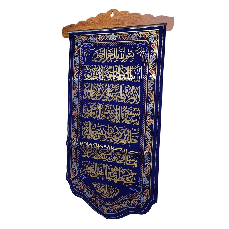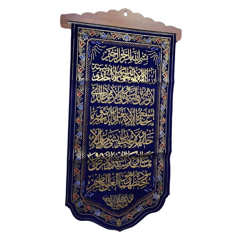 Wall Hanging Fabric Tapestry AMN-170B Islam Al-Quran Arabic Calligraphy House Decor Poster Art Decorative Ornament Muslim Gift. (Blue_Ayatul Kursi)