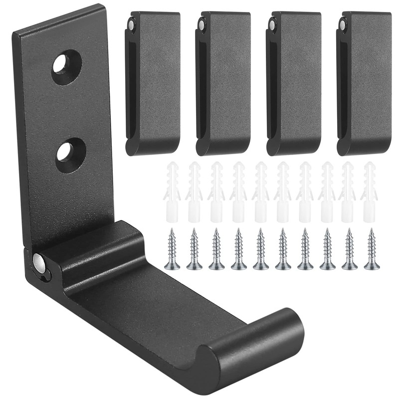 - Package included: 4 x Black Folding Wall Hooks with Mounting Screws The black design can be combined with a variety of home decor styles. The simple design is elegant and tasteful, multi-purpose, and very practical