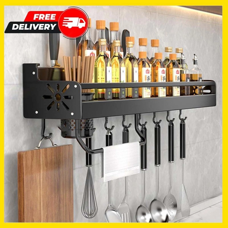 Wall Mount Utensil Holder with Hooks Multifunctiona