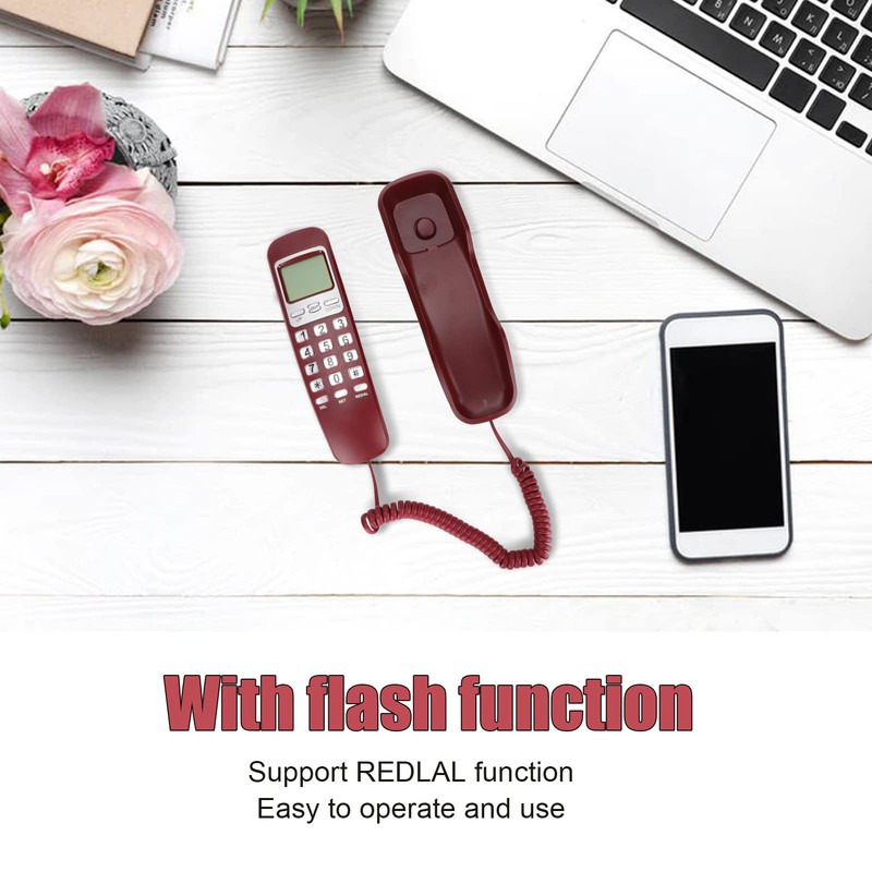 Wall Mounted Corded Phone, Compact Calendar LCD Display Redial Flash Function with Large Buttons, Desk Landline Telephone for Hotel Home Office(Red)