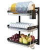 Wall Mounted Dish Drying Rack, 3 Tier Hanging Dish Rack Drainer, Wall Mount Kitchen Plate Organizer Storage Shelf with Drain Tray and 3 Hook, Stainless Steel, Black, Large, Ajustable Height ( 21.8" )