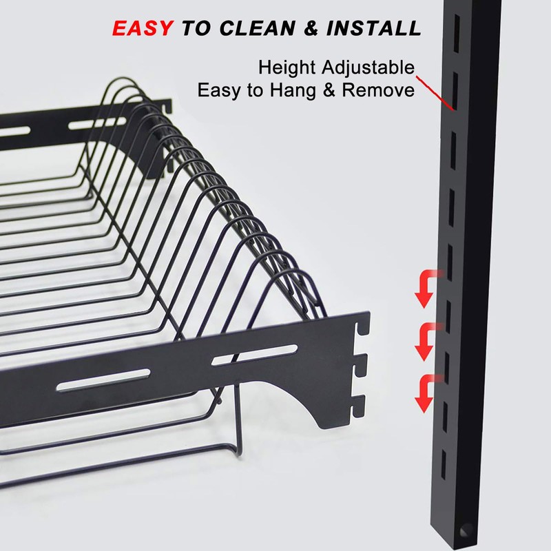 - Long Lasting Durability : Wall Mounted Dish Drying Rack organizer are made of black painting stainless steel material, which is corrosion resistance and can protect dishes against chips scratches
