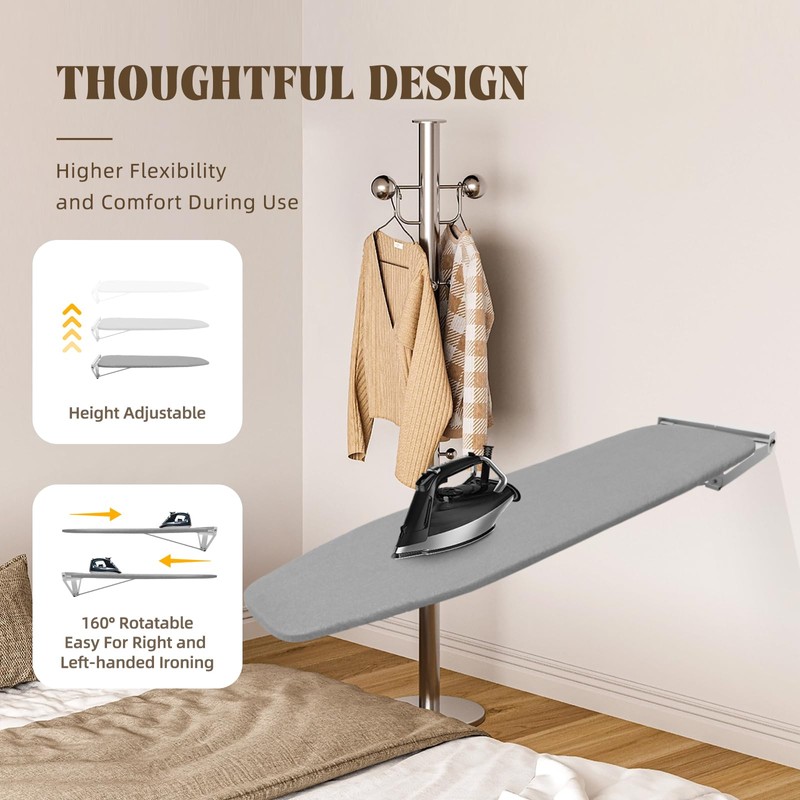 - 【Swivel Function】 This ironing board can rotate almost 160 degrees for right and left-handed ironing, making ironing clothes to be an easier thing.