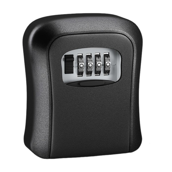 Wall-Mounted Key Storage Box, 4-Digit Combination Lock, Weatherproof Security Safe (black)