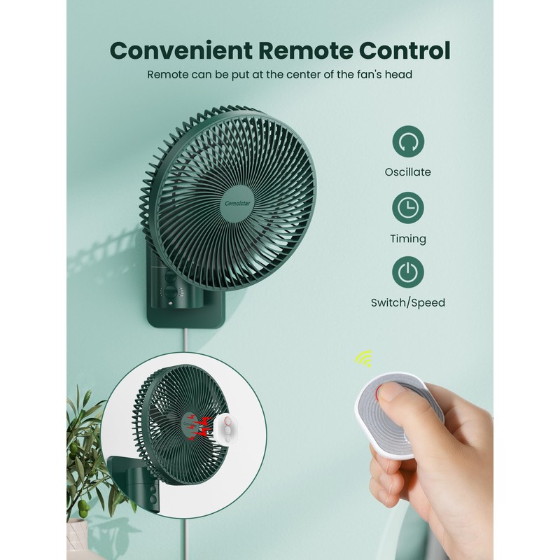 Wall Mounted Oscillating Fan with Remote and Timer,8.5 Inch Small RV Fan with 4 Speeds, 90° Oscillation, 120° Adjustable Tilt, 5.92 feet Wire, Quiet Corner Fans for Bedroom, Indoor Bathroom