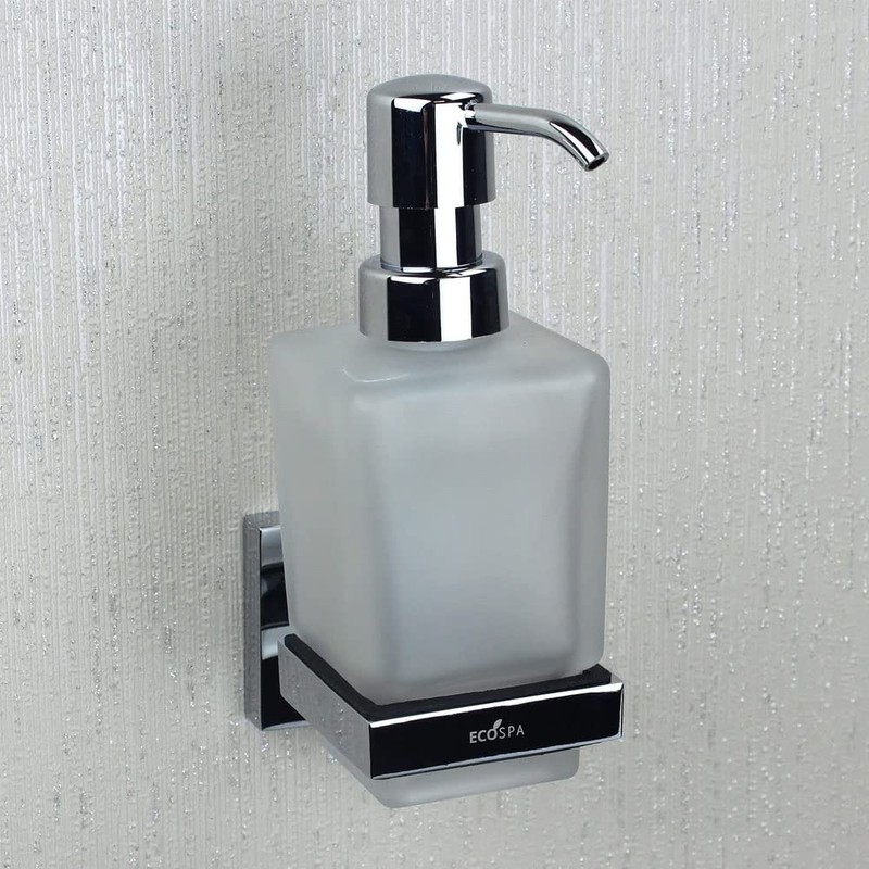 Wall Mounted Soap Dispensor in Frosted Glass with Polished Chrome Holder