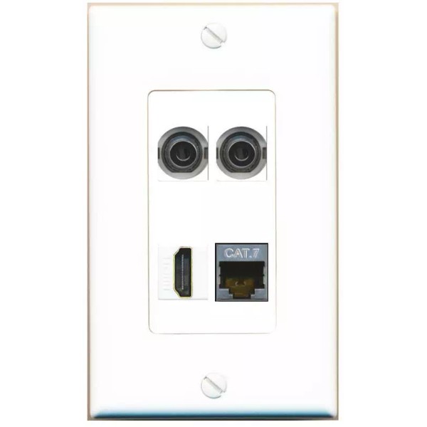 Wall Plate City [4 Ports] 2 3-5MM CAT7 HD Wall Plate DecorZ White