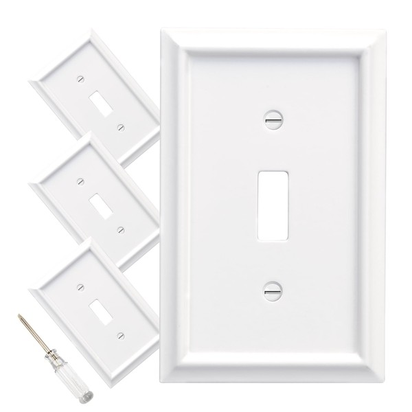 Wall Plates Duplex Outlet Covers, Classic White Light Switch Cover - Natural Bamboo Fiber Electrical Outlet Cover Plate Variety of 13 Styles: Toggle/Combo (1 Gang Toggle 4 Pack, White)