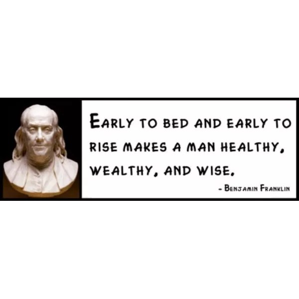Benjamin Franklin: "Early to bed and early to rise makes a man healthy, wealthy and wise. "