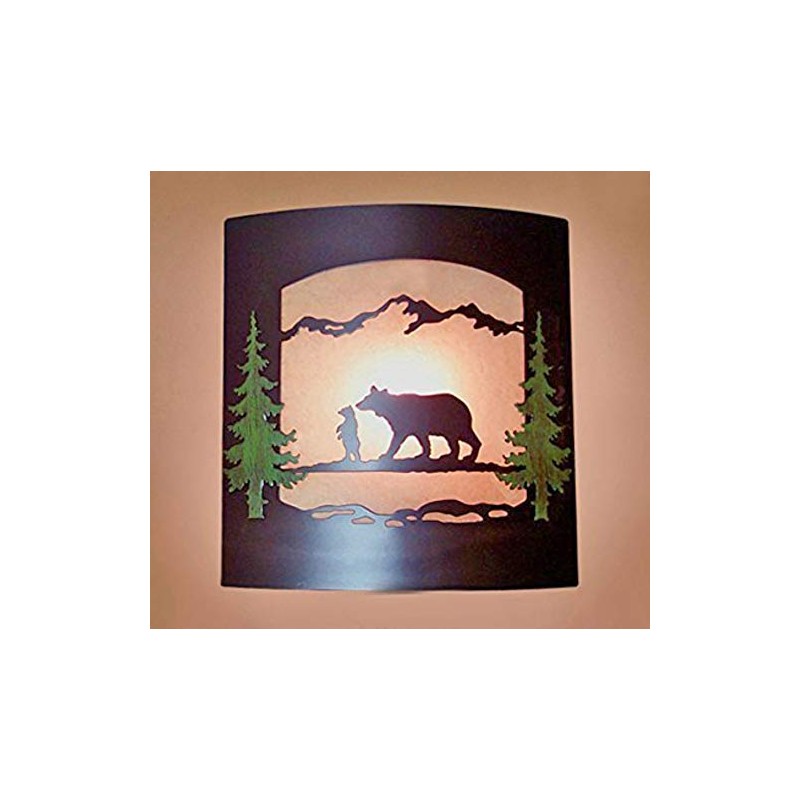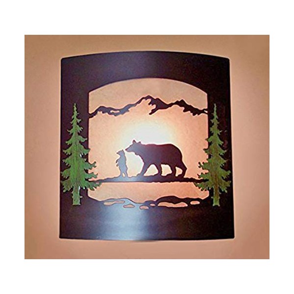 Wall Sconce Rustic Bears Light, Cabin Decor Lamp, Hand-Painted Pine Tree Left Facing