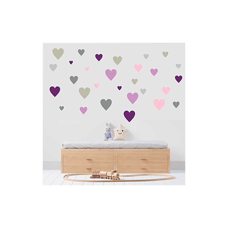 Wall Stickers for Children's Room - Various Models Available and Various Colours - Pack of 120 - Various Sizes and Pastel Colours - Children's (Hearts, 018)
