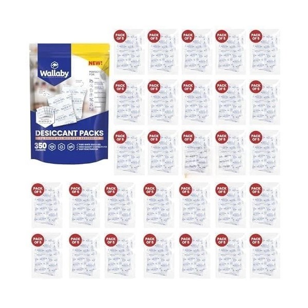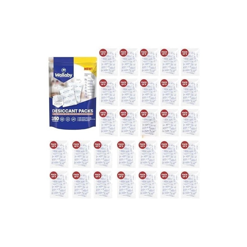 Wallaby 2 gram (350 Packets) Food Safe Pure White Silica Gel Desiccant Dehumidifier Pack
