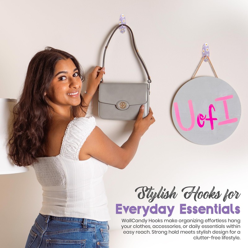 - Cute & Colorful - Why settle for boring sticky hooks when you can have these? This pack of 3 Purple Flower Design removable wall hooks brings personality to any space. Add a pop of charm with our sticky hooks!