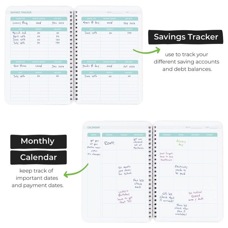 • MONTHLY BUDGETING: A monthly budgeting journal helps you set financial goals and track your progress towards achieving them. This feature helps you stay focused and motivated to stick to your budget each month.