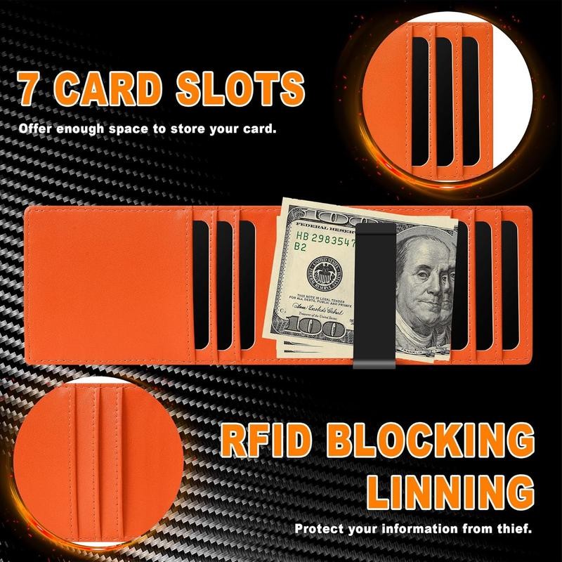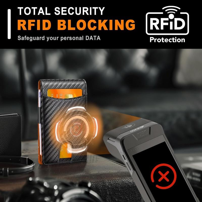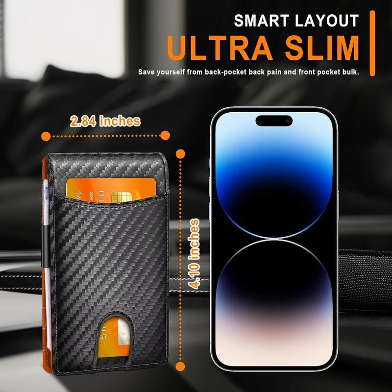 Wallet for Man with Clip - RFID Blocking Front Pocket Wallet - Multiple Credit Card Pockets - Minimalist wallet Credit Card Holder - for man, Husband, Dad - Color: Carbon Fiber Black - Orange