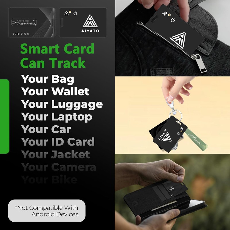 - 💳【Ultra-Thin Item Finder】This Apple Wallet Tracker is thin and won't add bulk and weight to your wallet. This iPhone tracker tag gives you peace of mind and convenience. Put the locator card in your wallet, passport, luggage tag, backpack, and more to find your lost items.