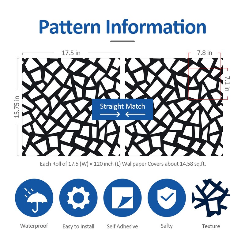 -Perfect installation: Use cardboard or a damp cloth to smooth out the black and white wallpaper. If there are air bubbles after pasting the geometric wallpaper, please use a needle or knife tip to remove the air bubbles
