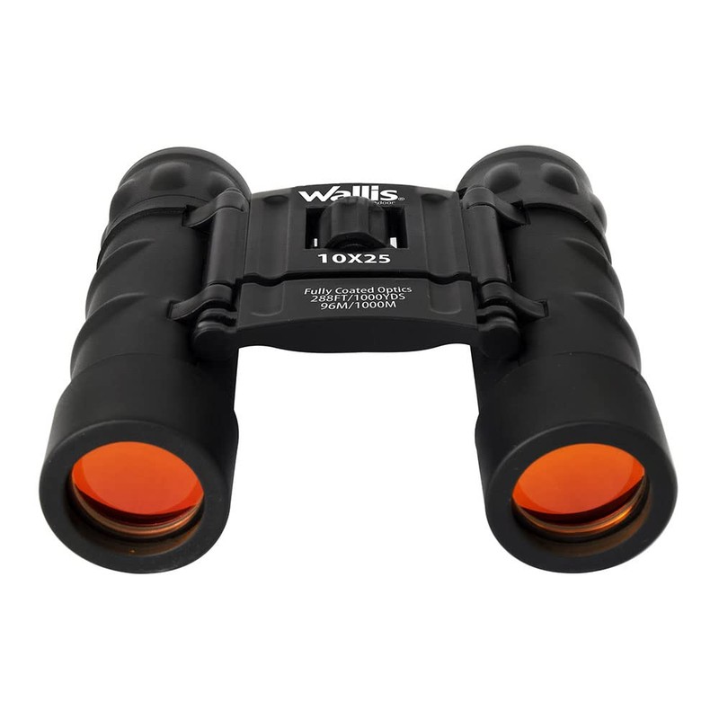 Wallis BI610307 Binocular Compacto Tipo Tejado, Negro, 10 x 25 mm, Revestimiento Rubicon