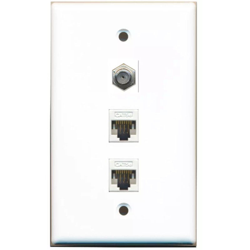 Wallplate City 1 Port Coax 2 Port CAT5E Ethernet Wall Plate Solid White