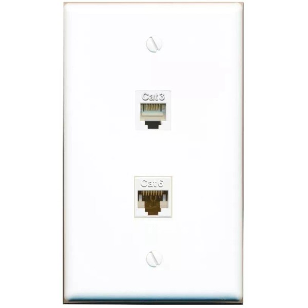 Wallplate City 1 RJ11 RJ12 Phone Port and 1 CAT6 White Ethernet Port Wall Plate