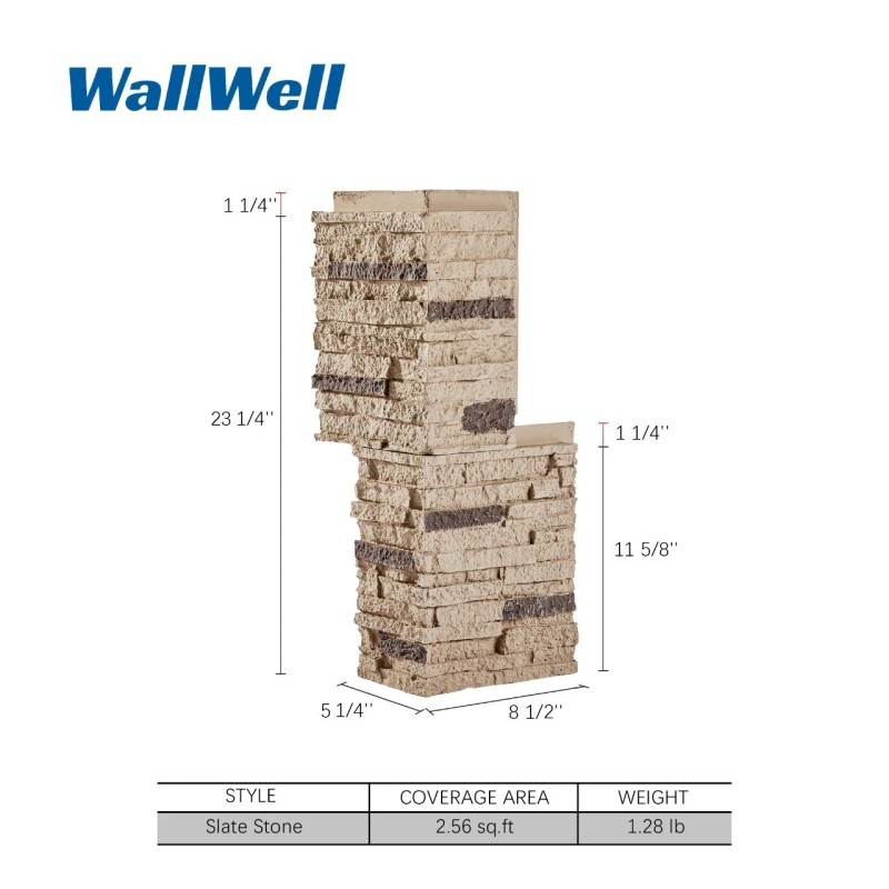 WallWell Faux Stone Panel 3.7-22.2 Sq Ft,Realistic Texture,Great for DIY Home Projects - Stacked Stone Corner – 1 Pair
