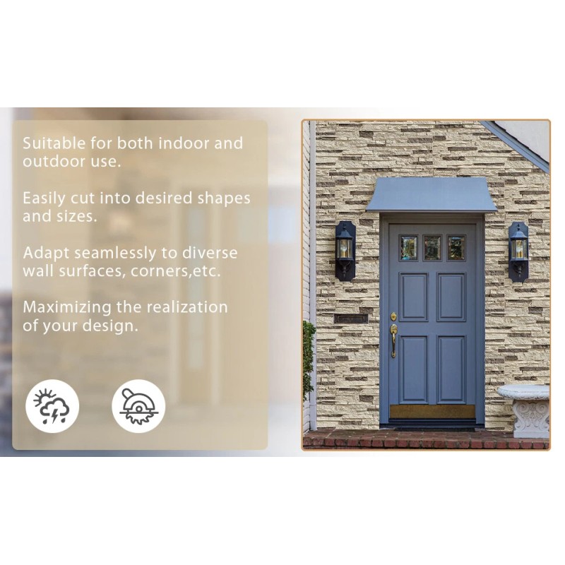Crafted from high-quality polyurethane (PU) material, these faux stone panels boast lightweight construction, facilitating effortless installation. Their versatility extends to both indoor and outdoor applications, serving as exquisite options for wall embellishment, cladding, or enhancing the aesthetic appeal of shops with their authentic textures and styles. From commercial establishments to residential spaces, garages, ADUs, and beyond, they enrich environments, imbuing them with a sense of natural beauty.