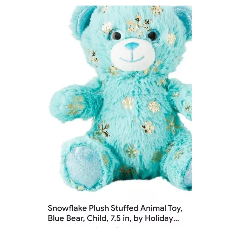 walmart NWT Snowflake Aqua Blue Plush 7” bear w star Gold sparkles all over HOLIDAY TIME