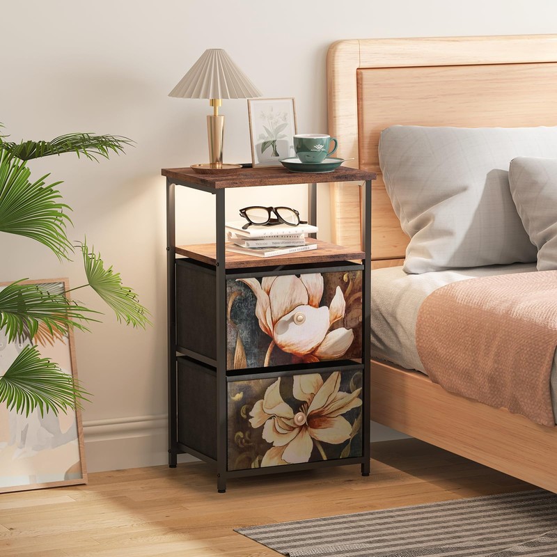 - βοΈγππππππ&πππππππ ππππππππγThe retro-style bedside table with drawers is made of high-quality materials, blending non-woven fabric and black metal frame to create an elegant atmosphere in your home while ensuring longevity and reliability for daily use. Wearing adjustable feet will protect your floor from scratches and ensure stability on uneven surfaces.