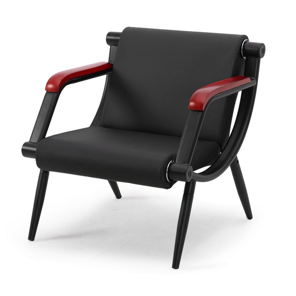 Walmokid Waiting Room Chair with Wooden Armrest, PU Leather Office Furniture, Lobby Conference Reception Chair, Office Guest Seating for Clinic,Airport,Hospital,Barber,Salon,Bank (Black, 1)