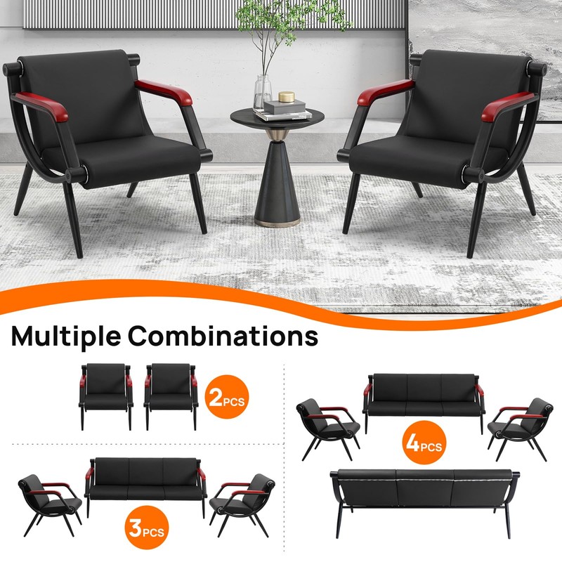 - 💺[ᴅᴜʀᴀʙʟᴇ ᴡᴀɪᴛɪɴɢ ᴄʜᴀɪʀꜱ]Waiting room chairs are made of black steel frame, comfortable PU leather and high-density molded cotton. Four legs and crossbar make it more stable and have excellent load capacity. Each chair has a weight capacity of 330 pounds. It is designed to withstand heavy use in offices or outside environments.