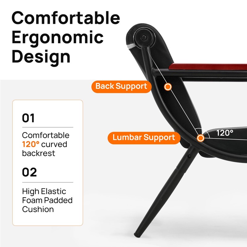 - 💺[ᴇʀɢᴏɴᴏᴍɪᴄ ᴅᴇꜱɪɢɴ]Ergonomic 120° curved backrest design helps relieve pressure, the soft foam padded cushion supports your back, and the thickened wooden armrests allow your arms to relax better. Conference Reception Chairs Provide more comfort for you or other meeting participants during long receptions.