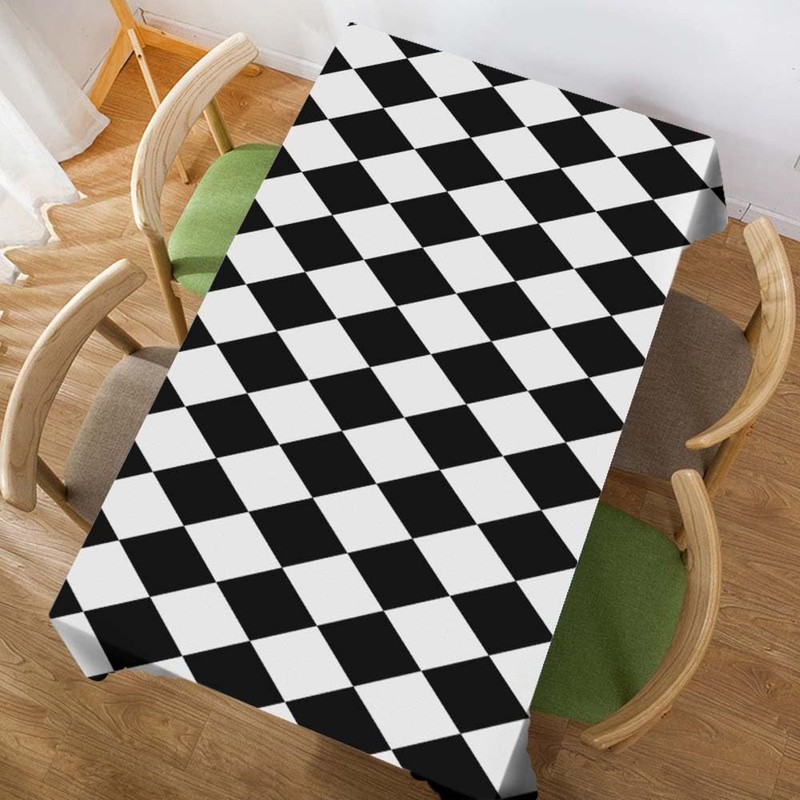 Walmsco Tablecloth Black White Diamond Pattern Decor For Dining Room Kitchen Rectangular Table Cover 132 * 178cm