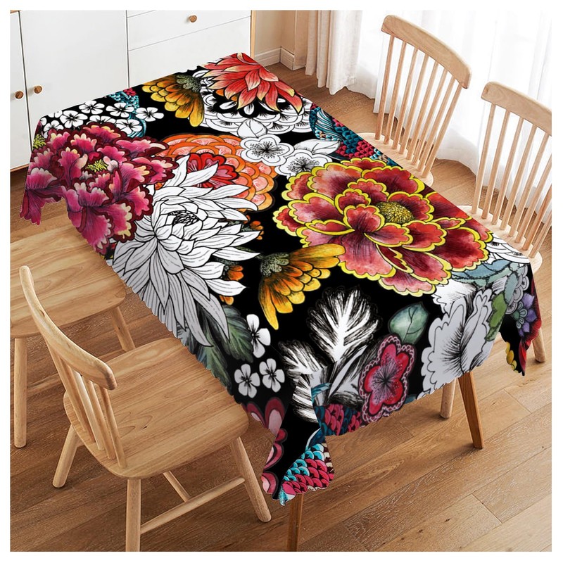 Walmsco Tablecloth Carp Peony Flowers Decor For Dining Room Kitchen Rectangul...