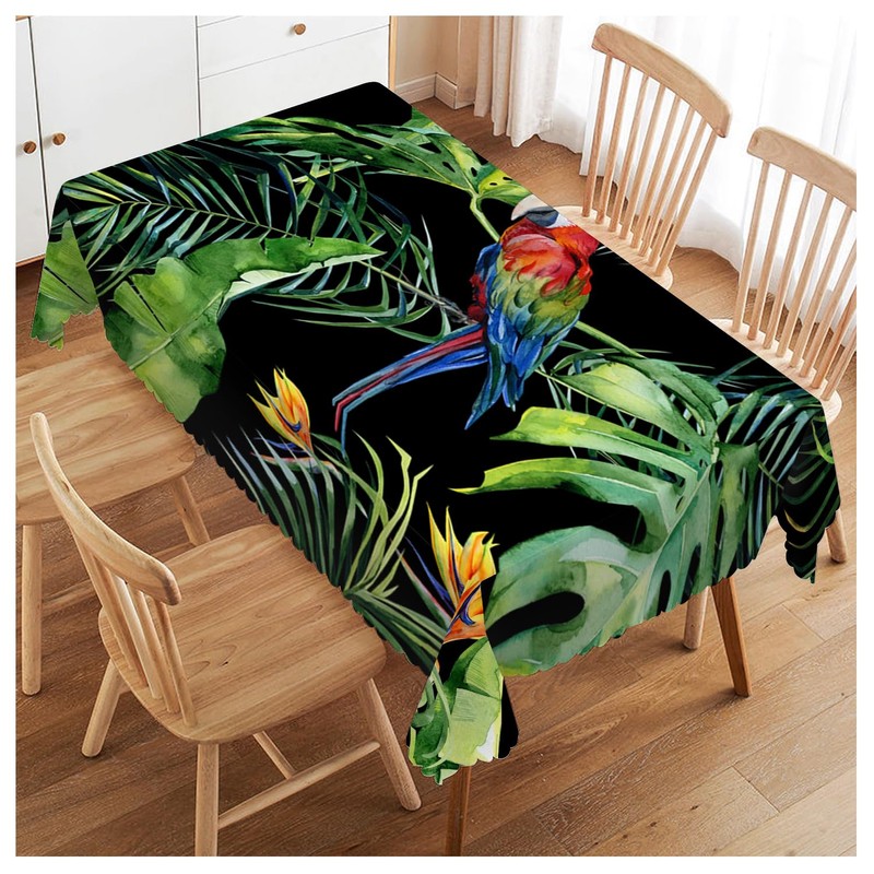 Walmsco Tablecloth Parrot Green Jungle Leaves Decor For Dining Room Kitchen Rectangular Table Cover 132 * 178cm