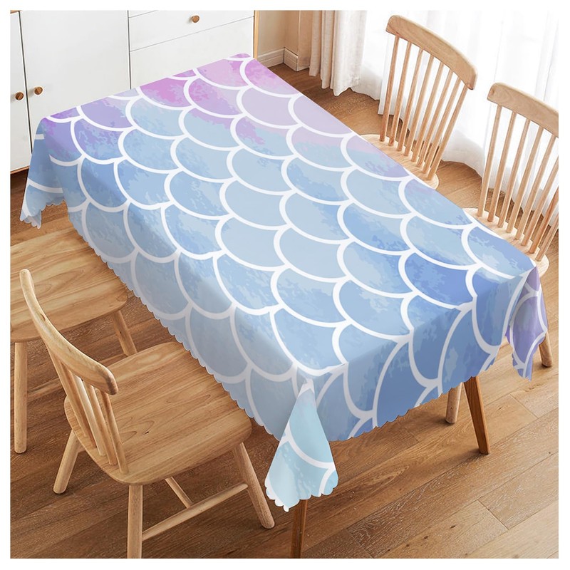 Walmsco Tablecloth Pink Purple Blue Mermaid Scale Pattern Decor For Dining Room Kitchen Rectangular Table Cover 132 * 178cm