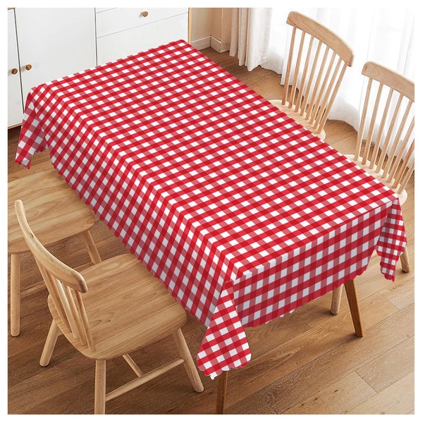 Walmsco Tablecloth Red White Plaid Decor For Dining Room Kitchen Rectangular Table Cover 132 * 178cm