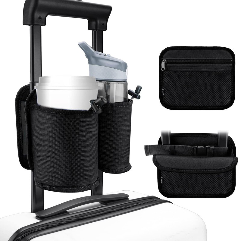WALNEW Luggage Travel Cup Holders Fits Roll on Suitcase Handles Attachment Dr...