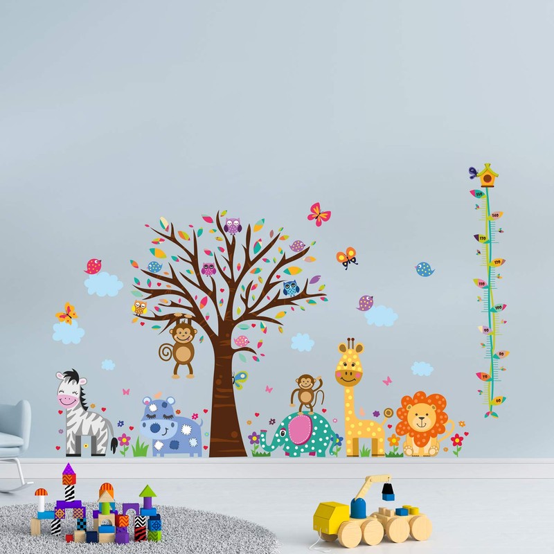 - Decorate walls, furniture, windows, and more with these cute animal and height chart decals.