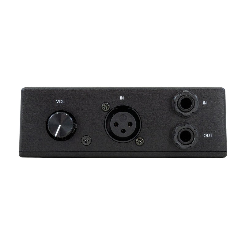- Converts ¼” balanced line level output from your DAW/Interface to unbalanced ¼” Hi-Z output to pedals or amps