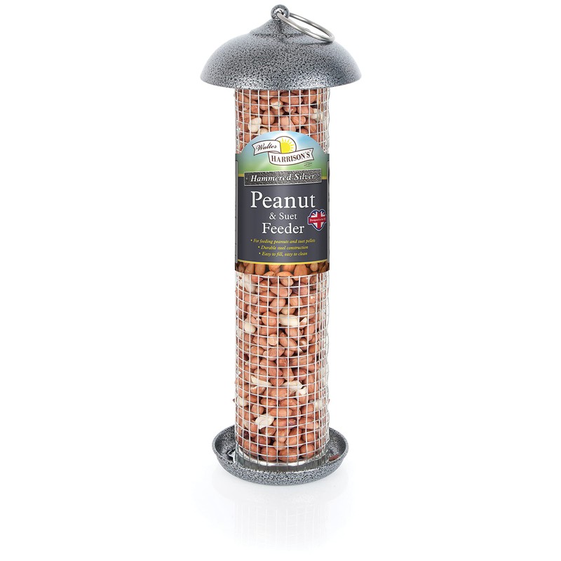 Walter Harrison's Hammered Silver Wild Bird Hanging Peanut and Suet Feeder - 30 cm